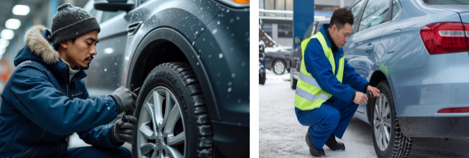 - 타이어 전문점 : 타이어 상태까지 점검 받을 수 있어 신뢰도가 높아요. (타이어뱅크, 티스테이션 등)