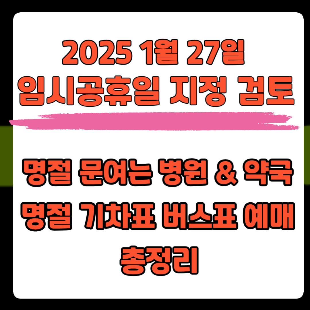 2025년 1월 27일 임시공휴일 지정 여부는 아직 결정되지 않았지만, 지정된다면 국민들에게 긴 연휴를 제공하며 내수 경제에도 긍정적인 영향을 미칠 것입니다. 정부의 발표를 기다리며, 명절 계획을 미리 세워 즐겁고 편안한 시간을 보내세요!